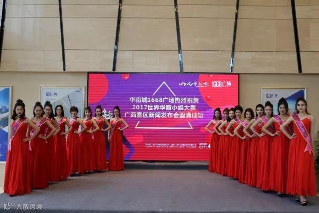 2017年11月23日,以“东方灵魂,民族精神”为主题的2017世界华裔小姐大赛广西总决赛新闻发布会在南宁市华南城1668广场营销中心隆重举行。大赛组委会主席章枫、大赛组委会执行主席罗晨恩、大赛组委会名誉主席黄世锋、华南城商业销售总监黄思远、联伟顾问董事长于延庆等领导嘉宾出席了本次发布会,此外还有相关的商界精英、社会名流、企业家代表等莅临活动现场。本次新闻发布会受到了社会各界广泛关注,知名度和影响力达到了新的高度。