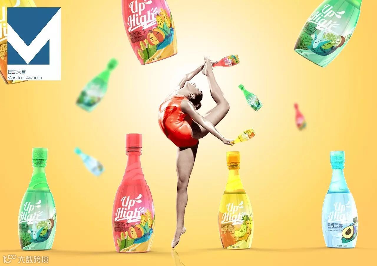 Up High(起来嗨)来自网络“睡什么睡,起来嗨”表现的是一种年轻人的不羁,一切美好事情从早开始,从随心随性,互动,好玩,天然中感悟万物的美好是这款饮料的宗旨,因为爱所以喜欢这款饮料。Up High饮料的灵感来源来自于体操健身中的体操棒的形态,如同体操棒的本身优美形态和运动时挥舞的美丽动态,可以用来摇晃,参与到消费的我运动,我健身,它的亮点在于,它提取的都是低热量,全营养的营养配方和插画表现的是年轻人喜欢的搞怪,可爱的水果形态表情,水果踩着叶子冲浪在四个季节,每一副插画都带有一些对饮料味道的想象和表达喝下饮料后消费者的感受,提高了购买欲。它的另一大亮点在于它在运动前还是后,无论是因为力气小还是手湿扭不开饮料,它可以借助另外一瓶饮料来打开手中的饮料,也可以让结伴健身的小伙伴用它手中的Up High饮料帮你开,产生的人与人的交流,饮料与人的互动,我的理念是想让饮料融入到人们的生活中和人的交际,生活产生互动,让你感受生活的美好,一切从爱生活开始。一切美好的事物都是因爱而生,纯天然,健康,阳光和互动有爱!打造新一代全营养且受消费者者追捧的好玩,充满爱的饮料!
