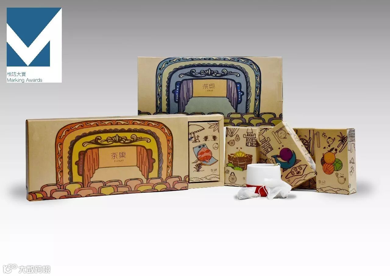 此次设计发想来源于中式剧场的形象,由于产品本本身是具有功能性的特殊口味水果茶,表现由内而外的养生观念,产品本身有解压助眠抗衰老等作用,结合客群的特色,联想到了剧院,沙滩等场所会是年轻人常去的娱乐去处。如今社会流行着复古风格,中式剧院加上西方人常去的度假沙滩,并融合活泼的手绘线条和可爱卡通形象,相信这种碰撞必会产生火花。此款包装的图案都是连续的,内盒包装可看作剧院内的舞台剧场景,四盒放一起会成为一幅完整的画面,分开之后也是独立的,增添包装趣味。
