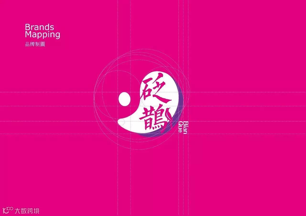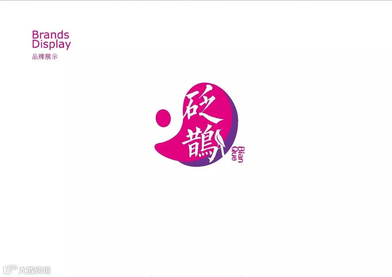品牌结合元素,砭石、太极、喜鹊与扁鹊。元素的创意结合形成最终的品牌形象。