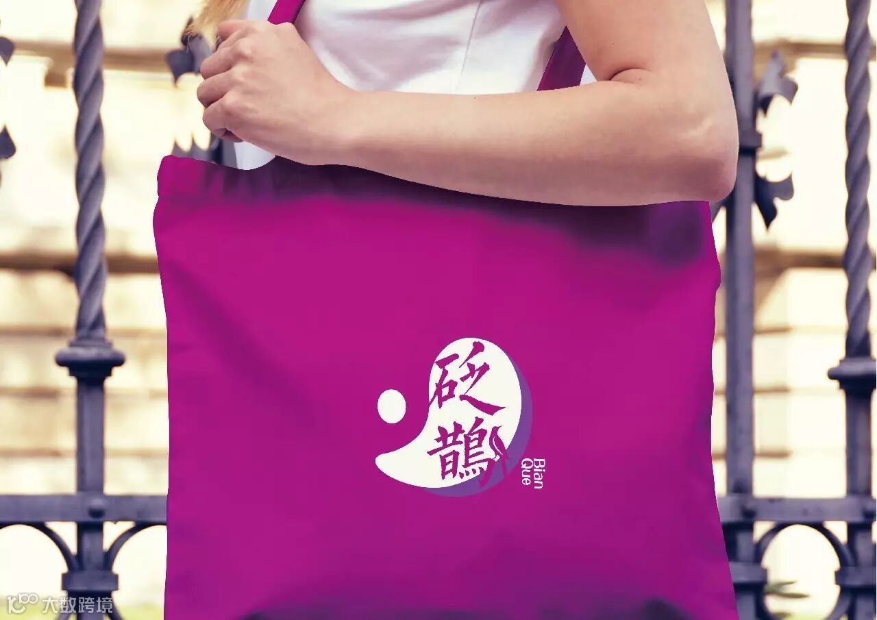 设计思路│品牌“砭鹊”音意扁鹊,我国古代家喻户晓的神医,这也正好符合品牌调性。标志的外形采用阴阳八卦的整体外形,具有阴阳调和之意,也正好迎合了品牌的功能性,通过砭石艾灸为身上具有湿毒的病人祛湿去毒,老少皆宜,尤其是对于产妇恢复身体具有极大好处。八卦的外形上加上了一只喜鹊,喜鹊是报喜之鸟,身上的病痛药到病除了,当然喜事一桩。颜色采用玫红和紫色,趋于女性的颜色,女性体质阴柔,容易身上带有湿毒,所以主要客户还是针对于女性,所以选色选择上偏向于女性。