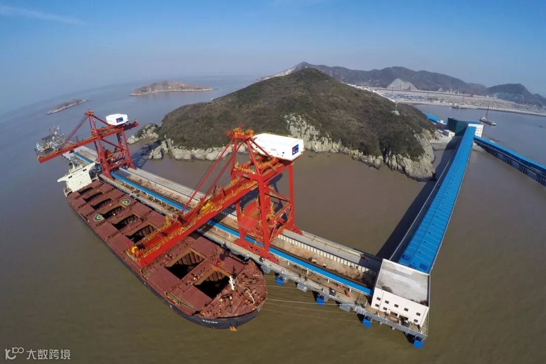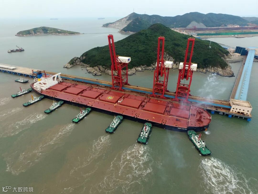 矿船“正明”轮靠泊鼠浪湖矿石中转码头,标志着宁波舟山港正式启动东北亚铁矿石分拨业务。