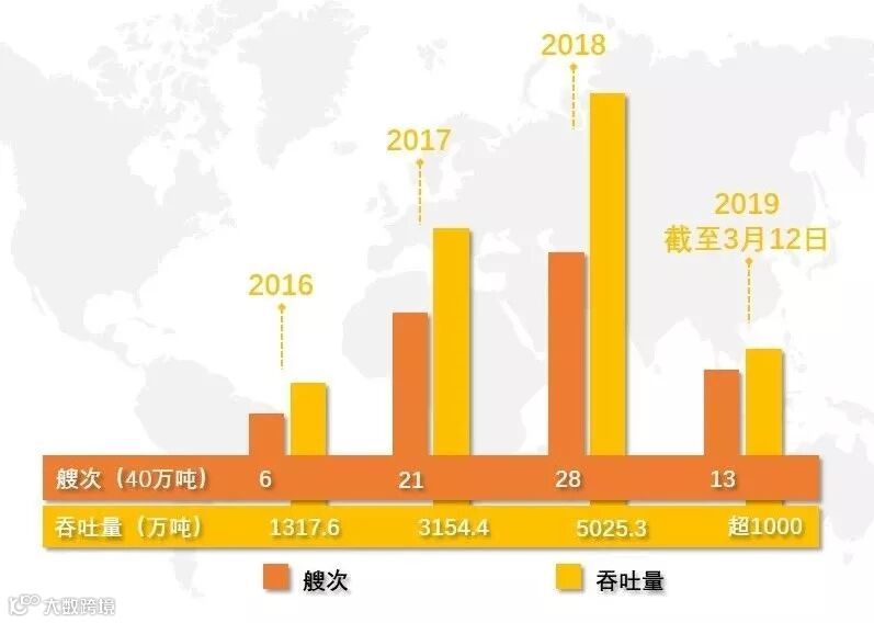 截至3月12日,宁波舟山港鼠浪湖矿石中转码头历年货物吞吐量累计已突破1亿吨大关,达到1.06亿吨,这是该公司发展史上又一座重要里程碑。