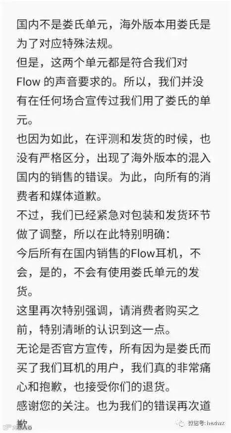 魅族对所有用户道歉,并且承认了自己的错误,对所有flow耳机全部召回,一个月后全面提供娄氏单元,并对召回用户作出补偿。