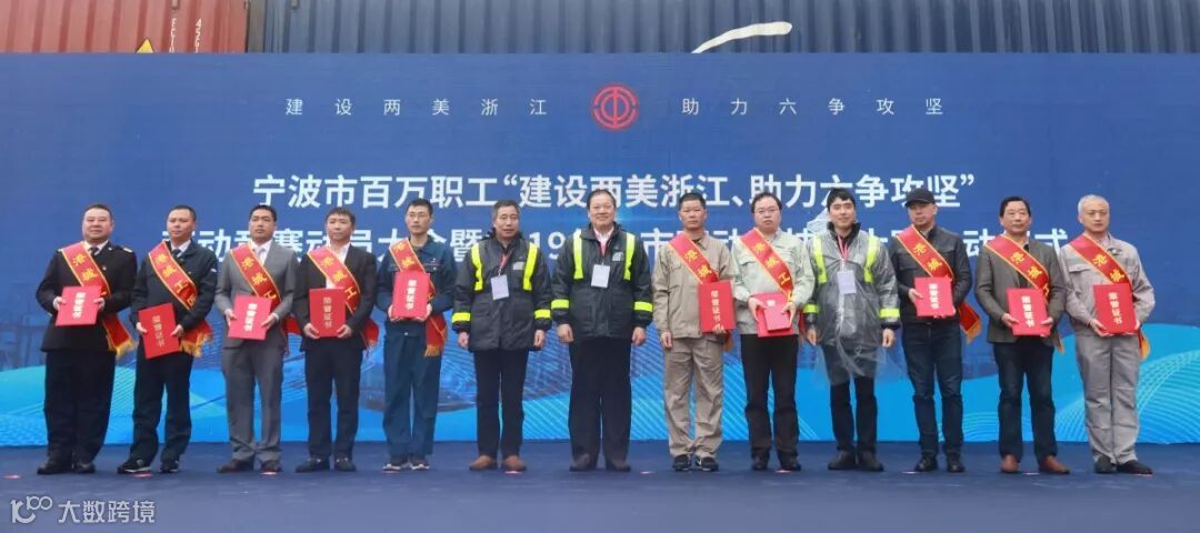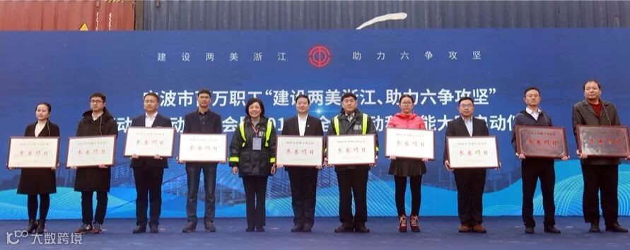 仪式现场表彰了第三批港城工匠、2018年度宁波市首席工人。仪式上,集团与宁波市轨道交通集团等10家单位联合发起“建设两美浙江、助力六争攻坚”倡议。