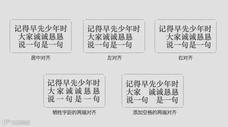 值得注意的是,当两行字数不等时,两端对齐需要一些技巧,一般有:牺牲字距法、牺牲字号法、填充空白法。