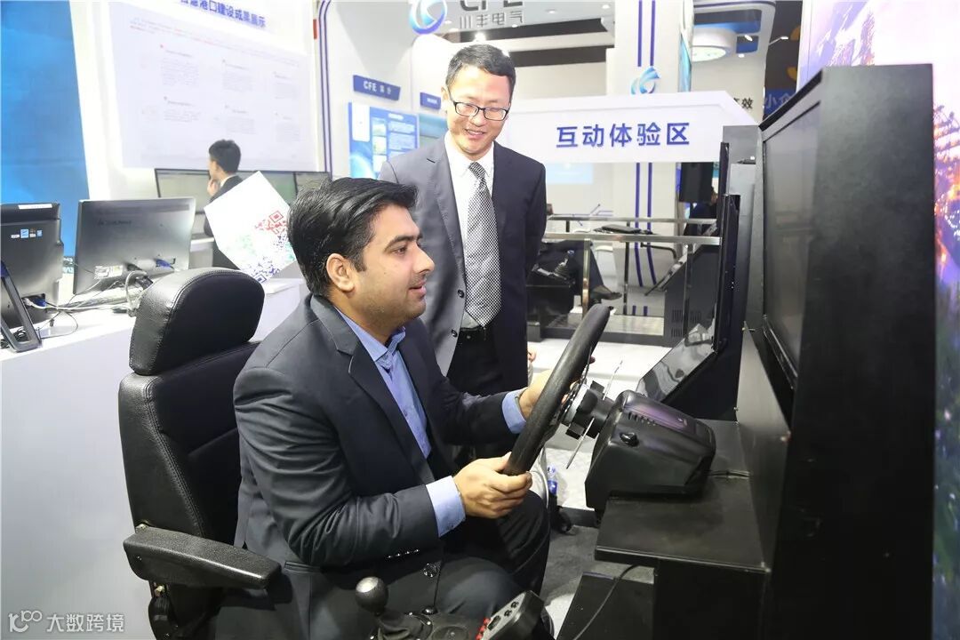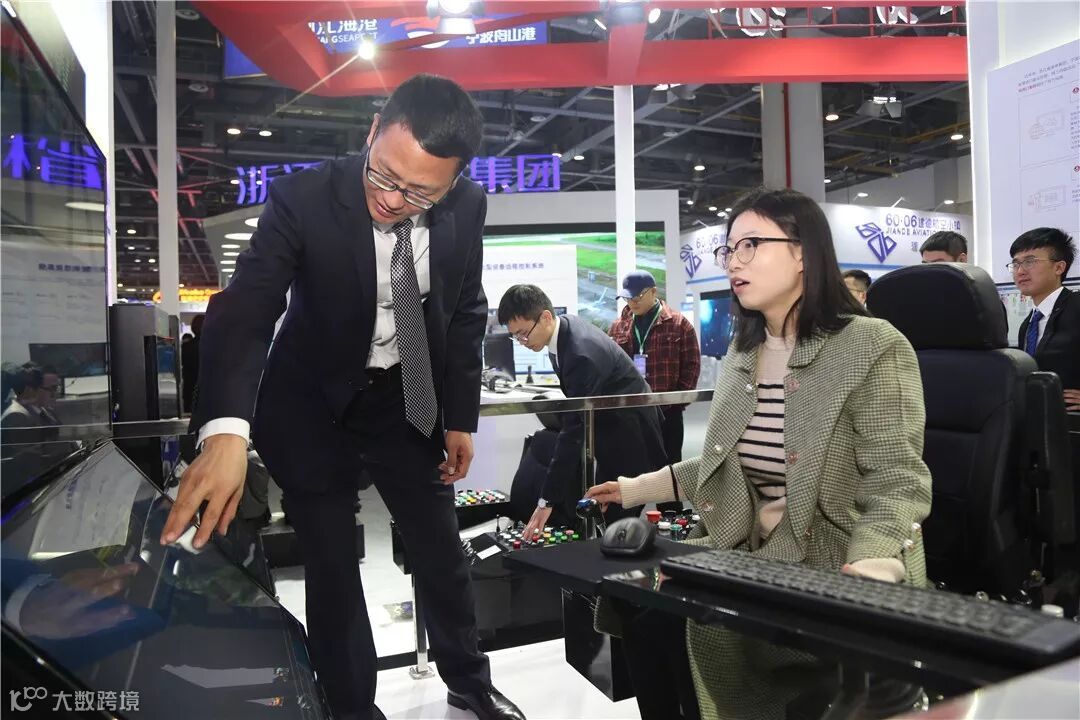 不少嘉宾围聚在互动体验区,驾驶集卡、龙门吊、桥吊等模拟设备,感受了一把港口一线工人的“Feel”。