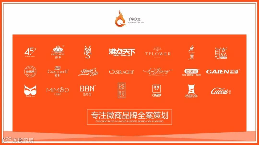 千卓创意,行业顶级实战操盘公司,成功操盘策划微商养护内衣第一品牌——裸香,微商男性健康第一品牌——初心,微商冰酒第一品牌——45度冰,微商功能饰品第一品牌——魔线,微商大健康领先品牌——盖恩等经典项目!