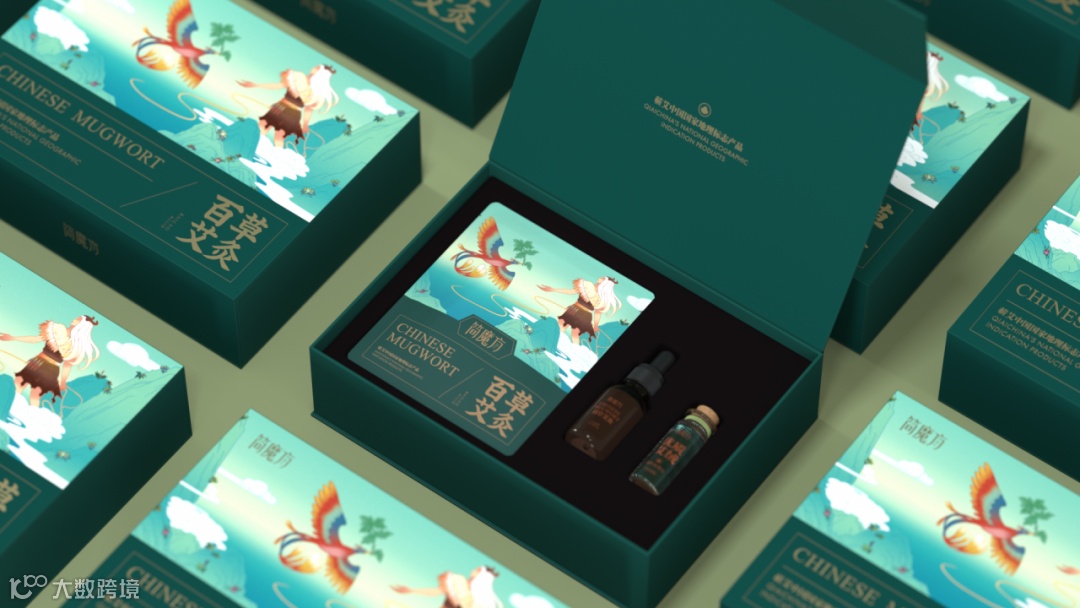 中华百草文化可追溯至“神农尝百草”,因此手绘风插画包装完美演绎“神农寻百草”、“赤鸟传艾”场景,赤鸟,为传递美好福音之神鸟,新国潮风的包装彰显简魔方“传承神农精神,立志传艾四方”的品牌使命!