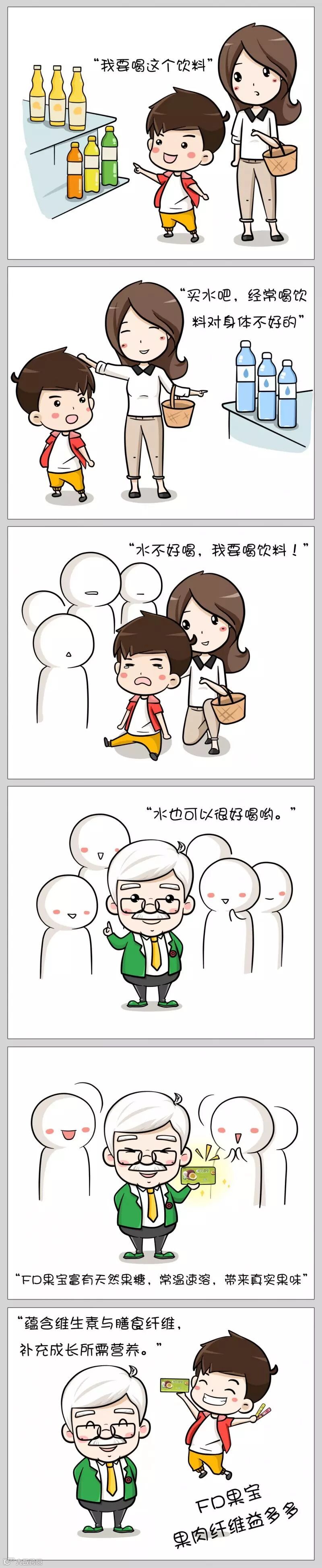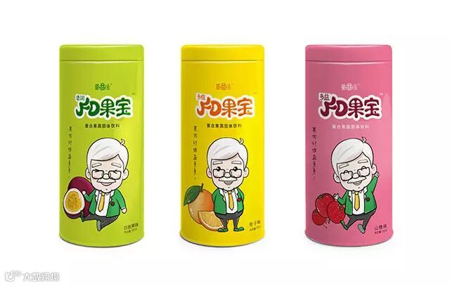 千卓创意团队以“天然、营养、健康”的品牌核心理念为主线,突破以往严肃、呆板的医生形象,采用灵活的老爷爷形象,融入水果等视觉元素,使童益生具备独特的个性和趣味,传递出健康、趣味的品牌形象。