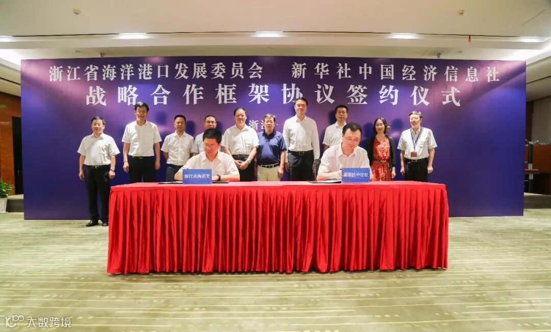 8月21日下午,浙江省海洋港口发展委员会和新华社中国经济信息社在宁波环球航运广场签署战略合作框架协议,双方将本着优势互补、资源共享、业务互动、合作共赢的原则,在指数开发、智库合作、品牌战略和信息服务等方面展开合作,并结合实际需要不断深化合作内容、创新合作模式,共同助力海洋强国、交通强国和“一带一路”建设,推动实现浙江海洋强省、国际强港和“一带一路”桥头堡建设目标。