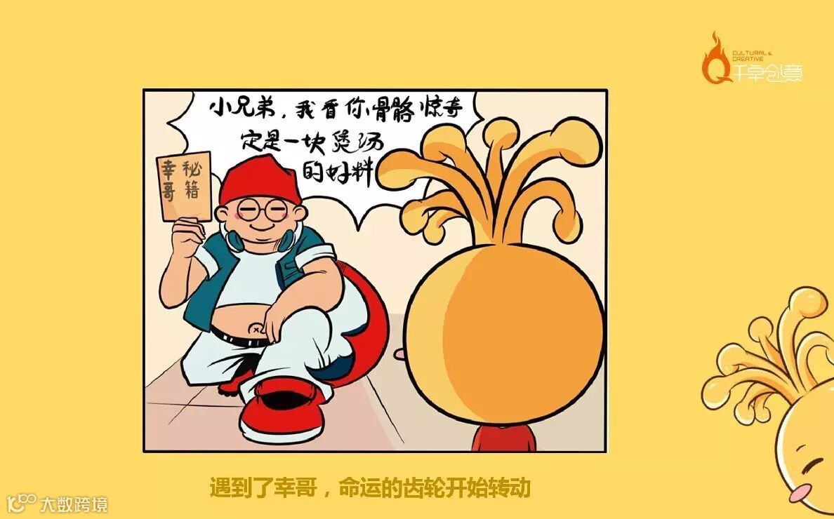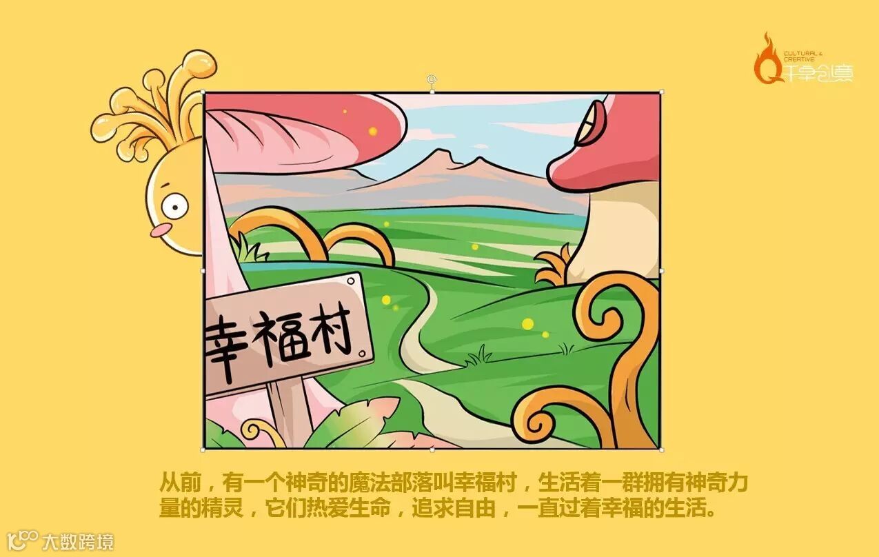 创造小七的品牌故事:小七生活在环境优美的“幸福村“(源自于品牌名字“幸福来”)并且拥有七种神奇的力量。