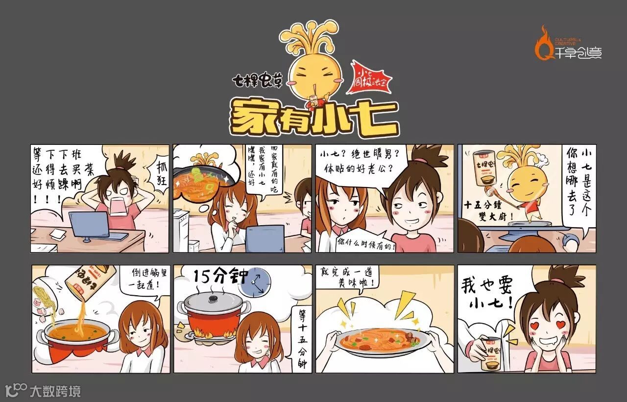 为了突出小七营养又快速等特点,千卓将消费者拥有“小七”后的幸福生活,通过漫画形式直接表现出来,加深消费者印象。
