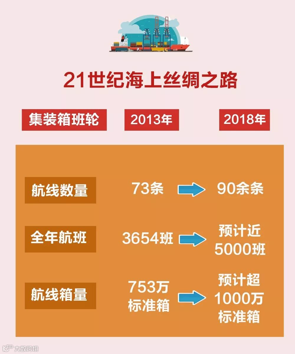 5年来,宁波舟山港在“一路”方向的航线数量已从2013年的73条增长至现在的90余条,2013年航班数、箱量分别为3654班、753万标准箱,今年有望达到近5000班、超1000万标准箱。“一带”方向,宁波舟山港海铁联运班列数量从2013年的4条增长至目前的12条,海铁联运线路覆盖城市从14个增长至42个,海铁联运业务量今年有望突破60万标准箱,进一步巩固了宁波舟山港作为全球货物吞吐量第一大港和中国南方海铁联运第一大港的地位。