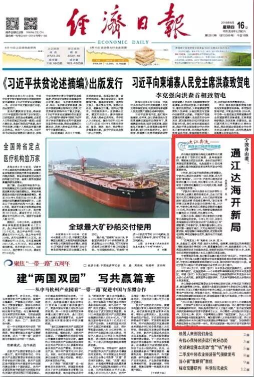 作为海陆丝绸之路的重要交会点,“一带一路”倡议提出5年来,浙江省把“一带一路”建设作为提升全省开放型经济水平的主抓手,加紧建设“义甬舟”开放大通道,将义乌和宁波、舟山港连接起来,向西联通丝绸之路经济带,向东连接21世纪海上丝绸之路,高水平打造“一带一路”战略枢纽。