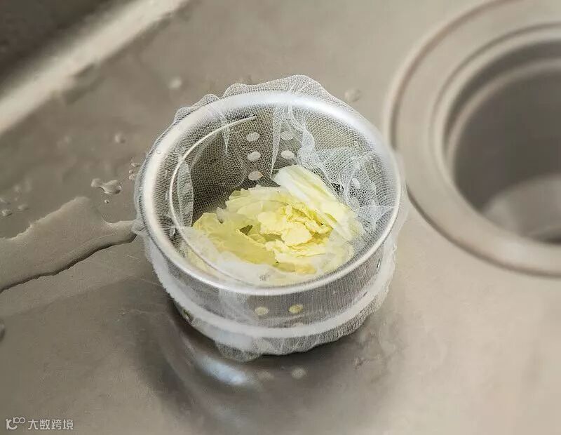 厨房水槽的下水篮孔隙有点大,洗蔬菜丁的时候一不小心就会往下掉,掉多了还容易堵塞下水道,清理起来真是一把辛酸泪啊。倒不如买个过滤网包起来,一天一扔,方便又省力,再也不怕洗菜了。