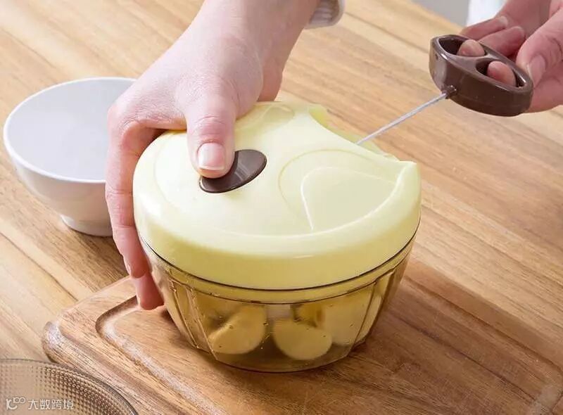 这款手拉搅拌器,可以搅蔬菜、搅辣椒、搅蒜泥、搅肉,省时、省力、省劲,还方便清洗,用它剁馅再好不过了!