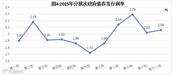 1.各发行批次对比。2025年政府债券分批次平均发行利率总体走势(见图4)。
