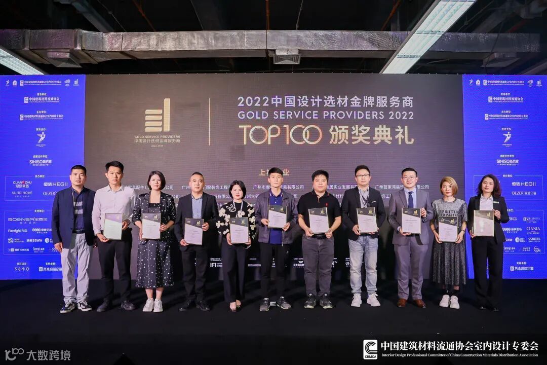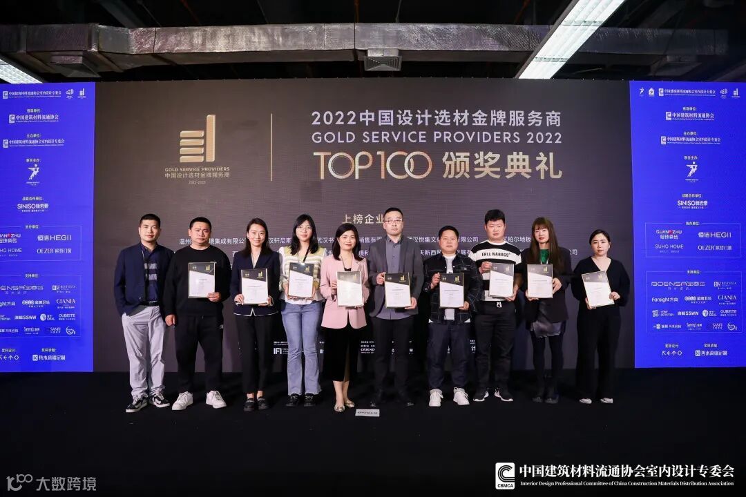 SYLVIE塞尔维品牌此次内蒙鄂尔多斯直营店、厦门直营店和重庆直营店喜获此次中国设计选材金牌服务商TOP100。