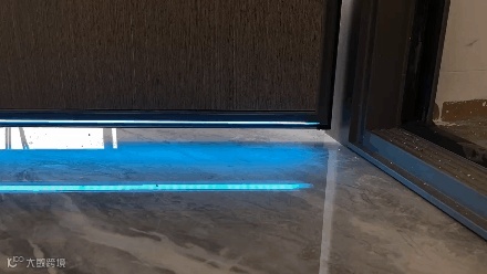 SYLVIE塞尔维独创门扇迎宾底槛,搭载人体感应灯带设计,人体靠近,门扇底部灯带自动亮起,给到你归家的仪式感。