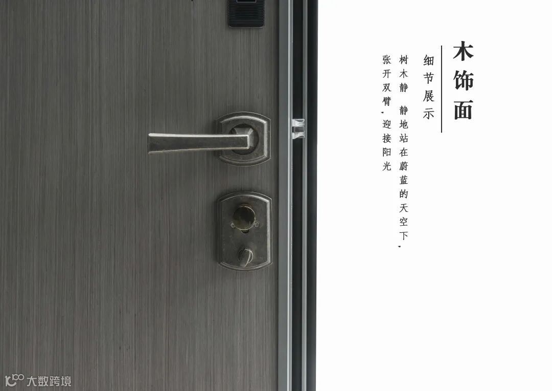 优质的五金配件也是必不可少,搭配进口G-U连体锁,拥有自动联动功能,关门锁舌自动伸出,入门归家更加安全。
