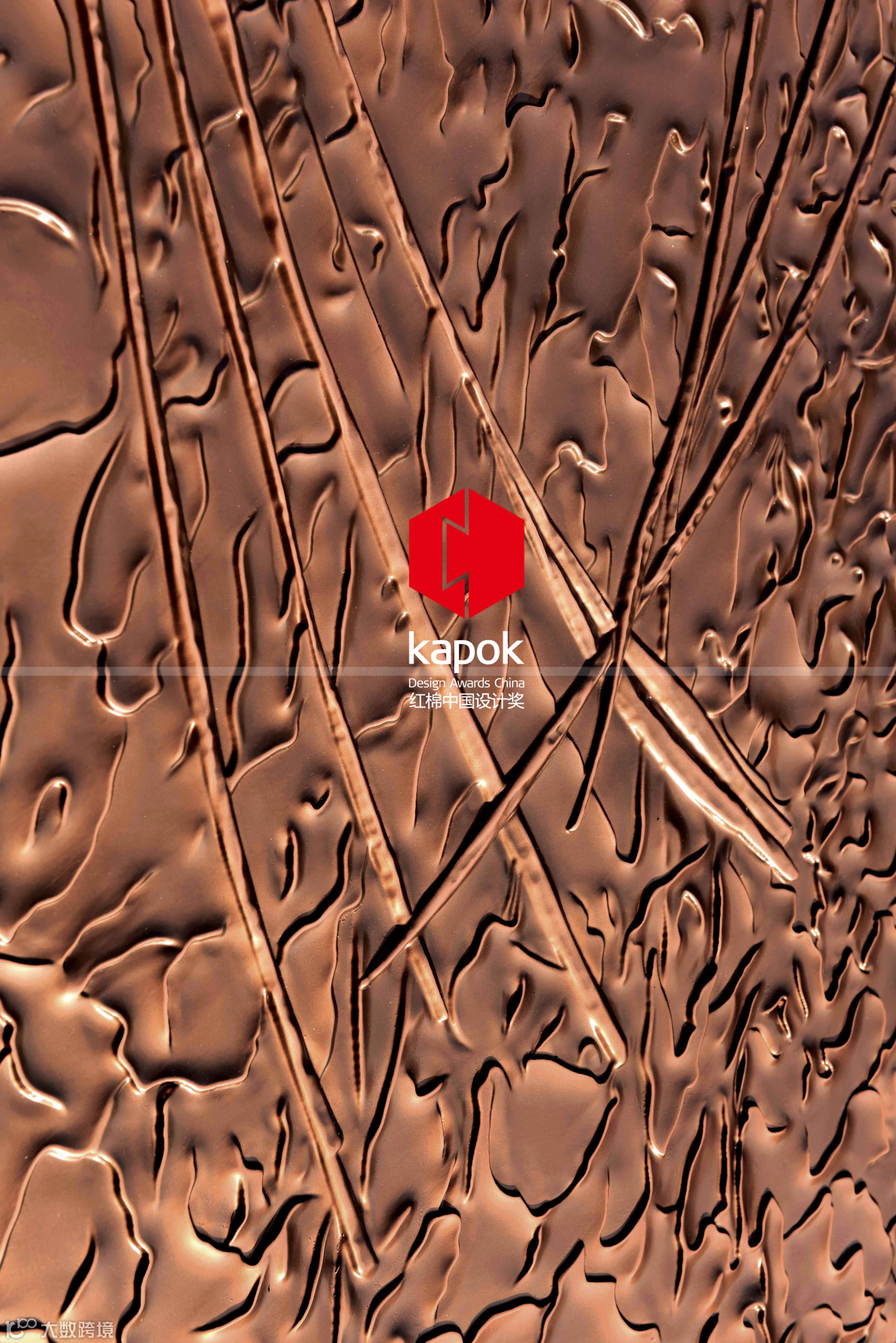 该作品是一个美术设计作品,作品名叫“阖瑞”,作品的底纹为树皮纹,寓意生生不息;上浮左右对称的舒展曲线,以不同长短、曲度来呈现一种瑞气祥和之感,又如两位亭亭玉立的少女在欢迎归家的父母长辈,带来一份阖家的欢乐。