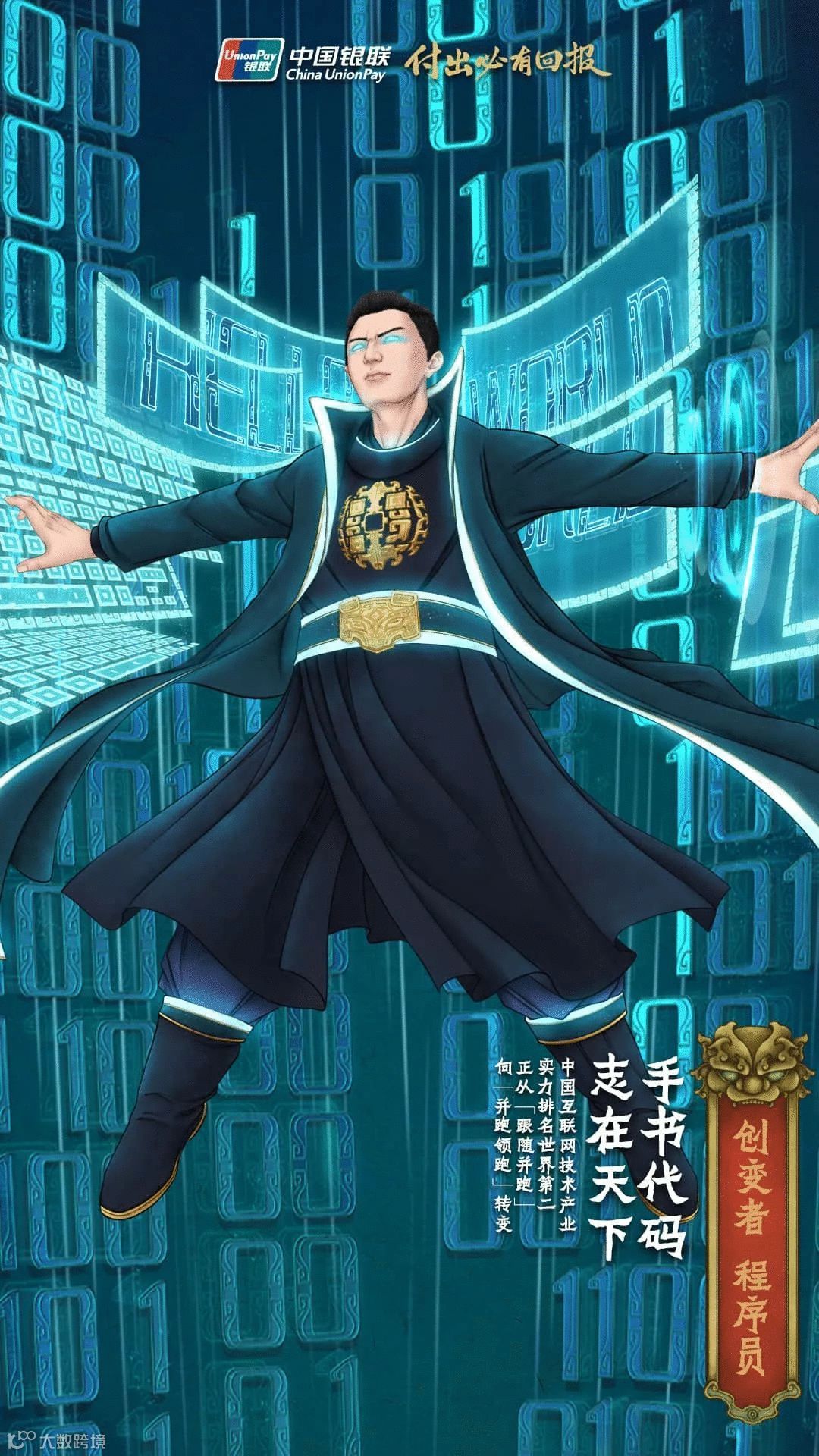 作为互联网第一生产力,百万个程序员把中国送入世界互联网大国行业。创意画面应该是取自黑客帝国。