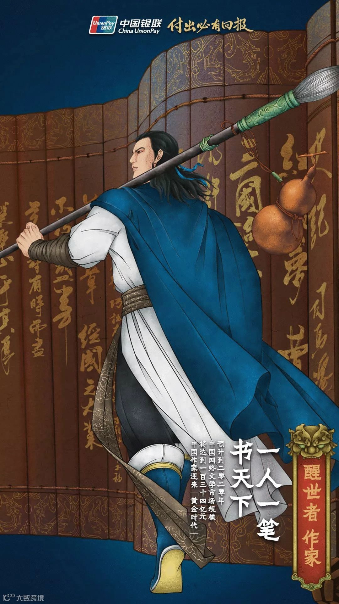 说到醒世者,大家第一反应可能都是鲁迅先生,可谓一代文豪,画中人物形象也是相当豪迈。一袭青衣,一株笔,一担好酒,照古今!