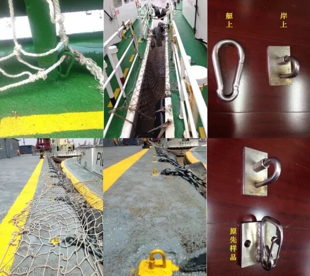 大港引航艇队在镇海基地加装了金属安全锁扣。这些小小的安全网挂钩扣强度大、抗腐蚀性能好,在方便安全网系解的同时,更好地保障了恶劣天气下人员的上下船安全。