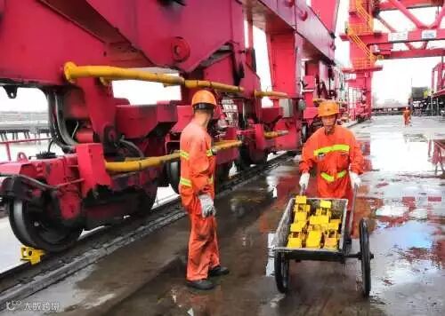北三集司有序推进桥吊、龙门吊大型设备的防风锚定工作,确保台风过后,在第一时间恢复作业。