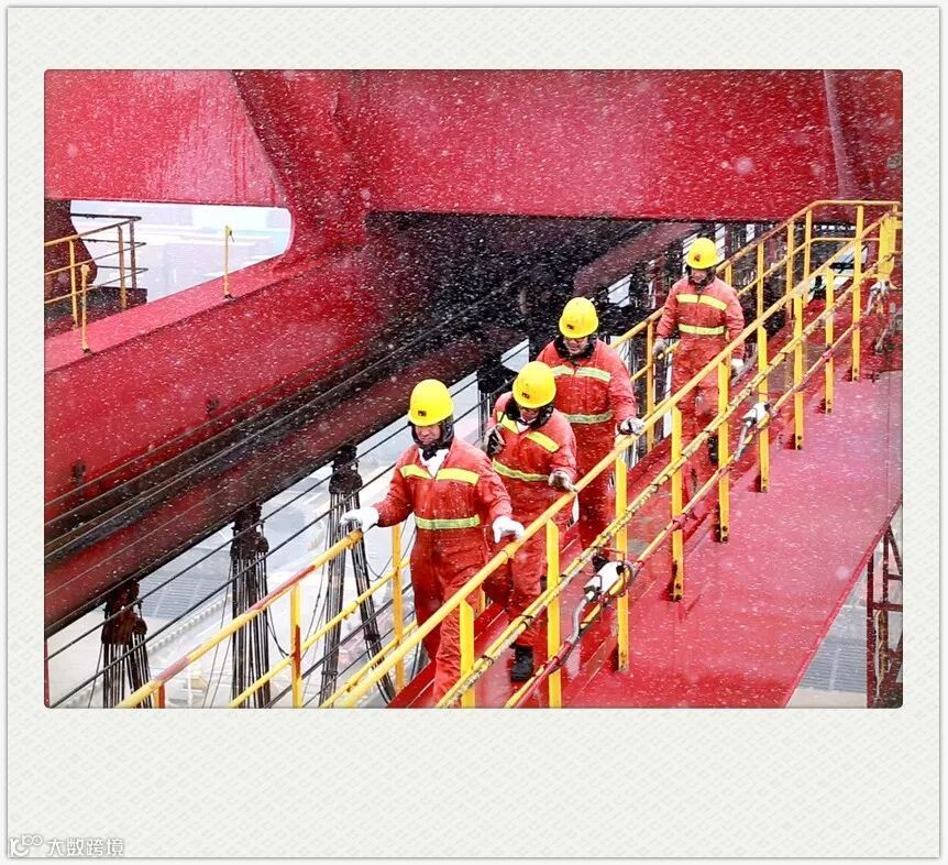 一次,李彦飞清早刚到单位,就听说4号桥吊前大梁倾转减速箱发生故障,需要马上更换空心轴。他二话不说带上徒弟赶赴现场,打开减速箱一看,才发现设备内部由于齿轮打毛发生连锁反应,故障远比预期要复杂得多。李彦飞迅速制定了解决方案,立即开始了抢修。时间一分一秒地过去,原本凉爽的空气开始变得沉闷,午后还下起了雨,李彦飞的衣服湿了又干,干了又湿。整整24个小时后,伴着海平面初升的太阳,李彦飞终于彻底修复了故障,他那悬着的心和沉重的眼皮,也慢慢放了下去。