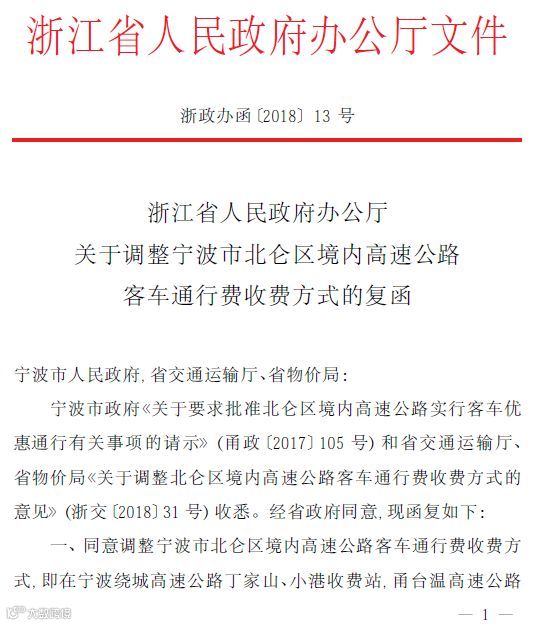 根据浙江省人民政府办公厅关于调整宁波市北仑区境内高速公路客车通行费收费方式的复函,北仑境内高速将免费!
