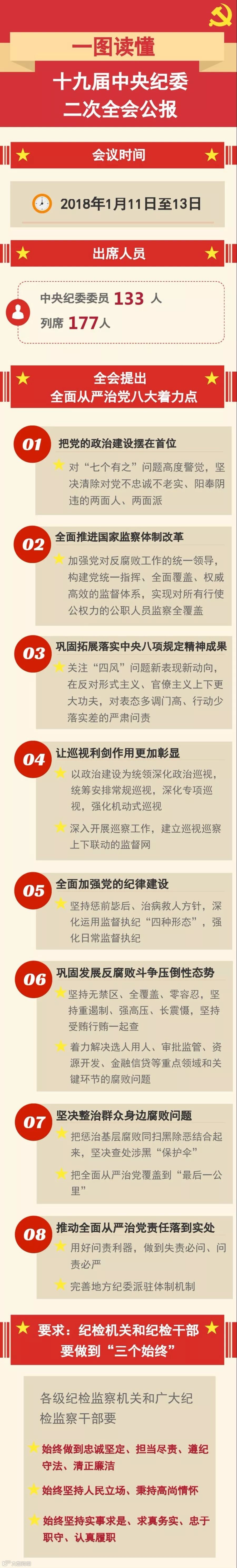 1月13日审议通过的十九届中央纪委二次全会公报新鲜出炉。想知道全面从严治党如何发力?