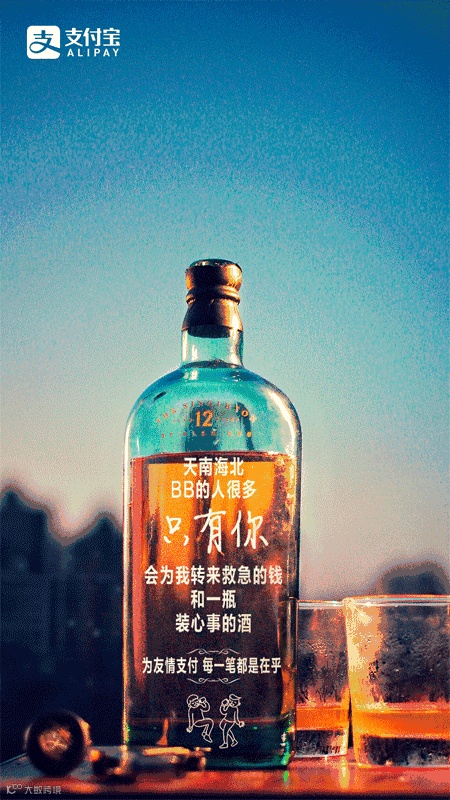 文案类金奖:每一笔都在乎 支付宝的“每一笔都在乎”系列海报,获得广告节文案类金奖。 这一系列文艺范的GIF创意海报,是知名广告公司“天与空”与支付宝合作推出。 主题是,为爱人、父母、死党等的付出,其实在乎的是背后的人。