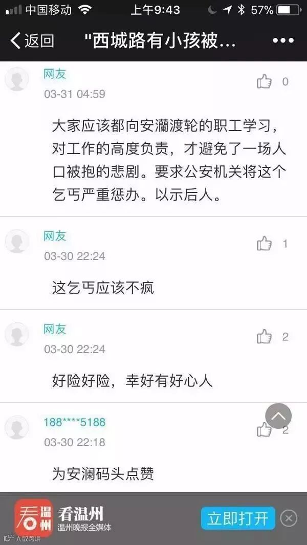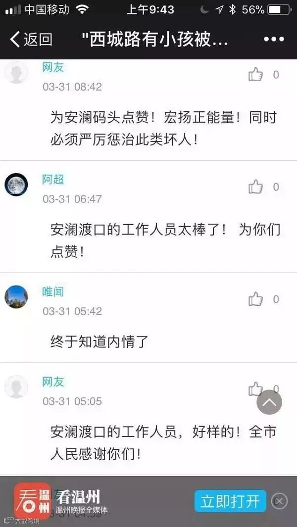 网友们在为被拐儿童成功获救而庆幸的同时,也为温州港安澜轮渡站员工们的机智纷纷点赞。