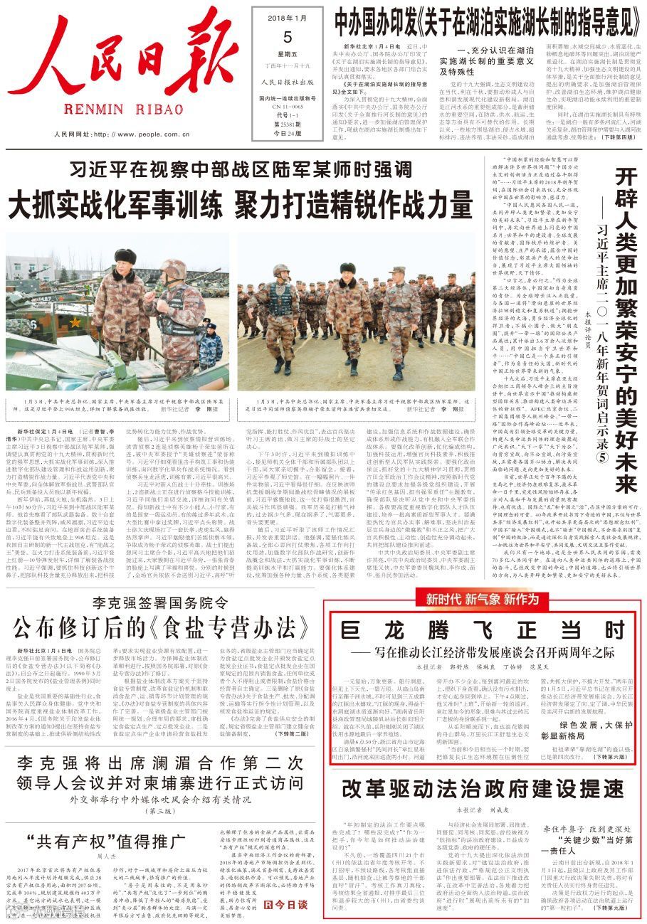 今天出版的《人民日报》头版“新时代 新气象 新作为”专栏中,刊登了长篇通讯报道《巨龙腾飞正当时——写在推动长江经济带发展座谈会召开两周年之际》,聚焦我国长江经济带发展现状。