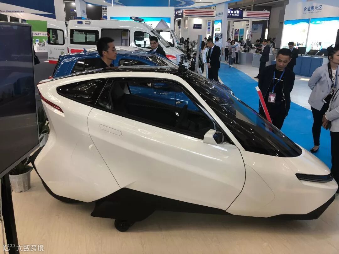 铜川馆展出的新型电瓶车,充满电可以行驶80公里,最高时速可达20公里每小时,适用于各大景区。