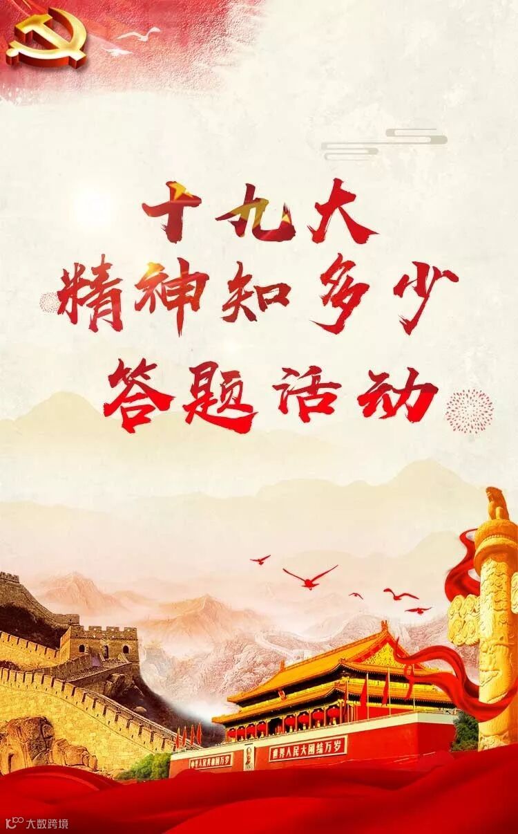 为加深对党的十九大精神宣贯,创新十九大精神学习形式,提升广大党员领导干部和员工群众对十九大精神的理解,举办本次答题活动。