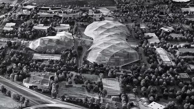 BIG 和 Thomas Heatherwick 为 Google 设计了可移动的半透明玻璃帐篷群。Google 在 2015 年的一篇官方博客中做出说明,“不同于建造一个无法移动的钢筋水泥块,我们将创造一个轻质的、模块化的可移动的建筑体,半透明的帐篷内是可控的气温湿度,树木、景观、咖啡吧和自行车道穿过这些建筑体”,他们试图打破建筑与自然之间的明确分界。与之类似,NBBJ 为亚马逊在西雅图设计的总部则直接建造了三个玻璃穹顶,在巨型温室内再造自然。