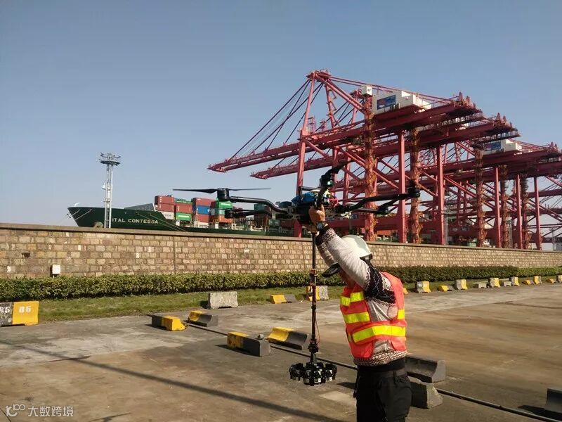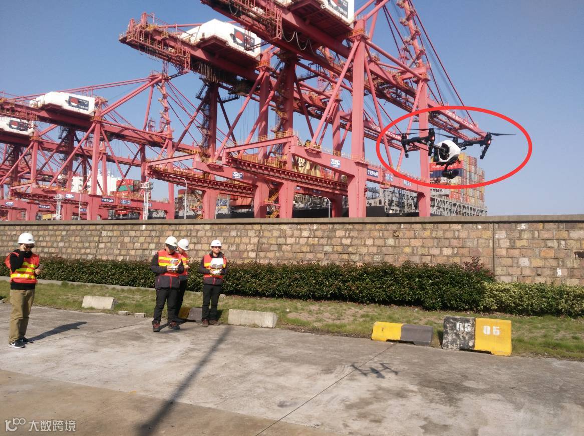 “侦察机”升空,据摄制组人员介绍,这是为了先了解码头全景,从而制定航拍飞行路线。