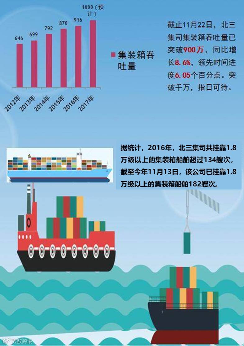 2017年,是北三集司一体化运营的第一个完整年,生产经营都取得了可喜的成绩,成为世界最大集装箱船争相靠泊的理想之地。