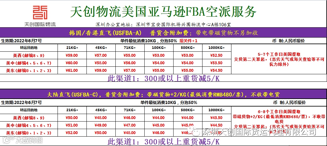 5.USFBA-A (韩国/香港直飞) 价格下调3 ! 低至53/KG !