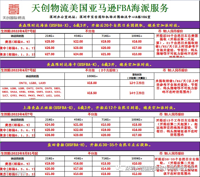 1.USFBA-X (美森正班船限时达) 价格下调1! 低至16/KG!
