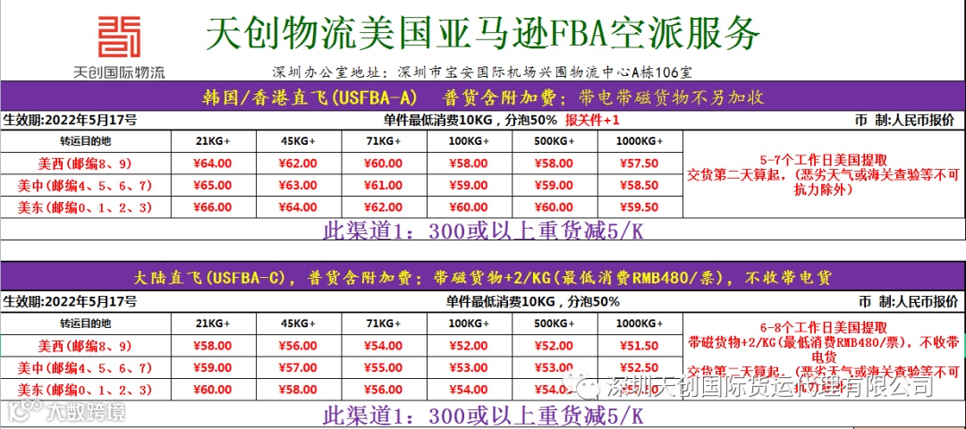6.USFBA-C (大陆直飞) 价格不变 ! 低至52/KG !