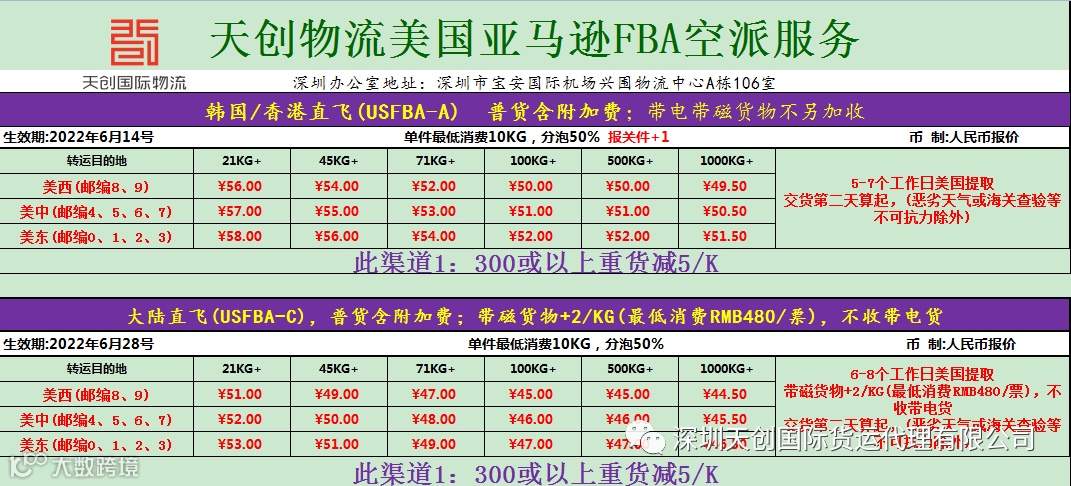 6.USFBA-C (大陆直飞) 价格上调2 ! 低至45/KG !