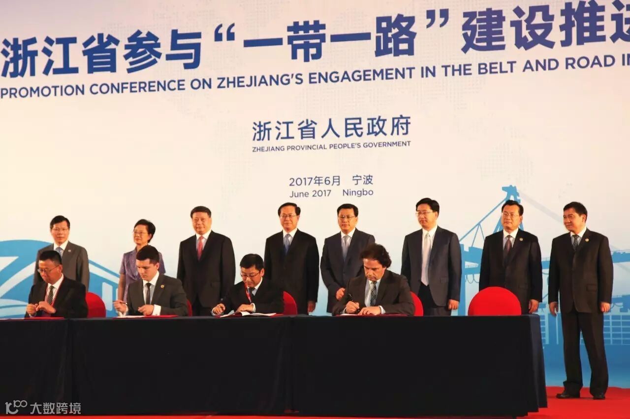 6月8日,省政府在宁波举行浙江省参与“一带一路”建设推进会。会上,浙江省海港集团与招商局港口控股有限公司(以下简称招商局港口)、俄罗斯铁路股份公司(以下简称俄铁)分别签约境内境外“一带一路”沿线港口股权合作项目、物流平台合作项目。