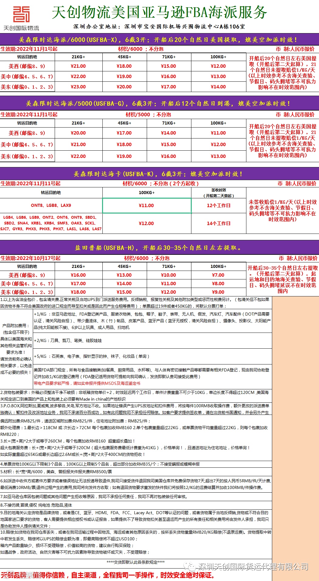 注:由于UPS大幅度上调价格导致打单成本上涨,现海派,美中,美东价格上调0.5/KG!