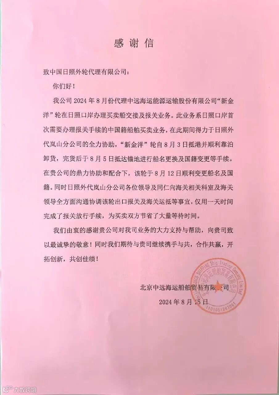 根二是助力“发展新质生产力”。日照外代把客户降本增效作为出发点,深度融入客户的产业链和供应链,与客户深度捆绑、战略合作,为客户发展新质生产力助力。针对绿色能源生物柴油出口面临的多家拼船、单据货物要求各异的局面,岚山分公司专门调集资深业务人员合力研判,总结归纳难点,梳理解决痛点,在日照海关的大力支持下,形成一套成熟的操作办法,优化了属地查验流程,大大提高了清关效率,解决了客户的燃眉之急,得到了客户的高度赞誉。