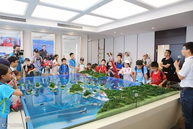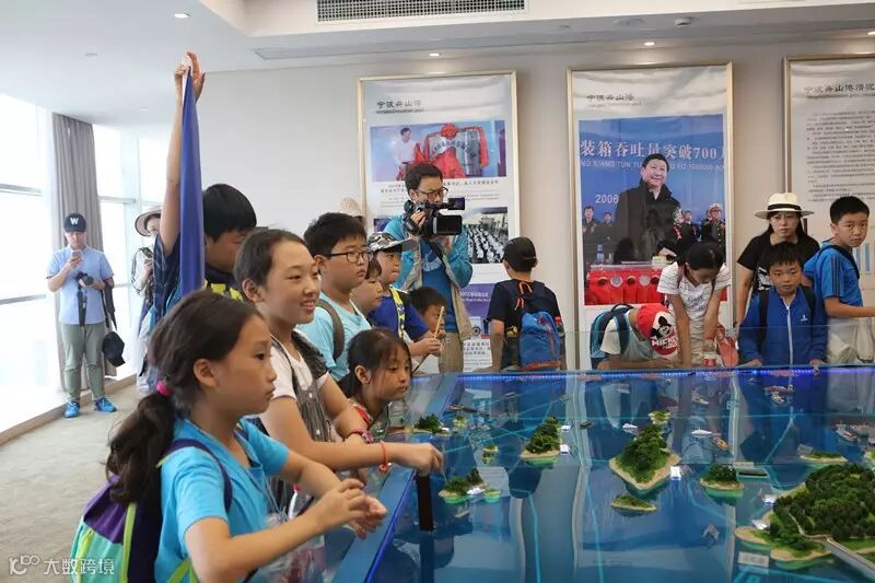 在港区沙盘前,我们通讯员小洪同志摇身一变担当起讲解重任,给中日韩的小朋友上了一堂生动的课——发展中的宁波舟山港。
