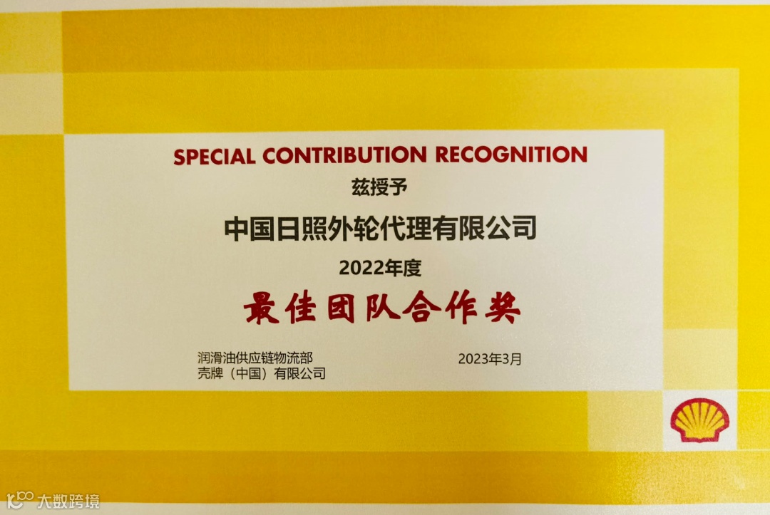 3月30日,在上海壳牌商务中心召开以“赋能进步、共创净零”为主题的2023年供应商大会上,日照外代凭借KPI考核全年满分的出色表现获得壳牌颁发的2022年度“最佳团队合作奖”,连续四年荣获壳牌中国颁奖。